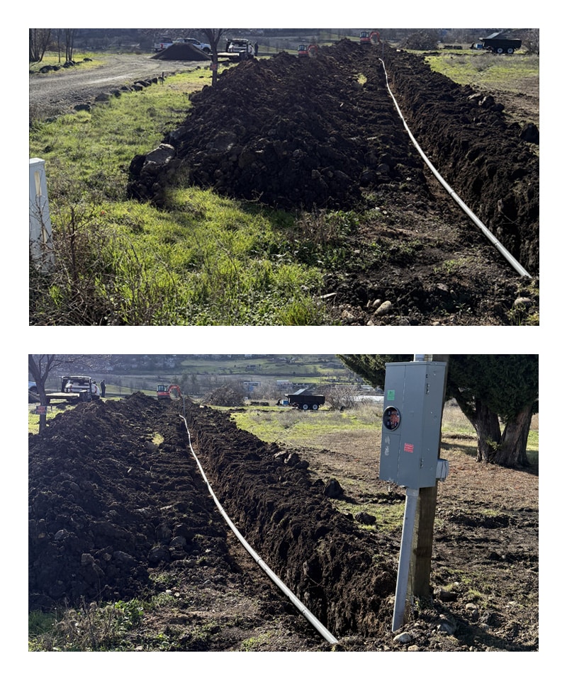 Laying the groundwork—literally. This trench was carefully dug and lined to bring electricity and water to the BCLA property, marking an essential early step in transforming the land into a fully equipped large animal care facility.